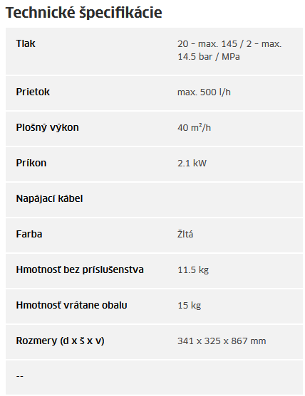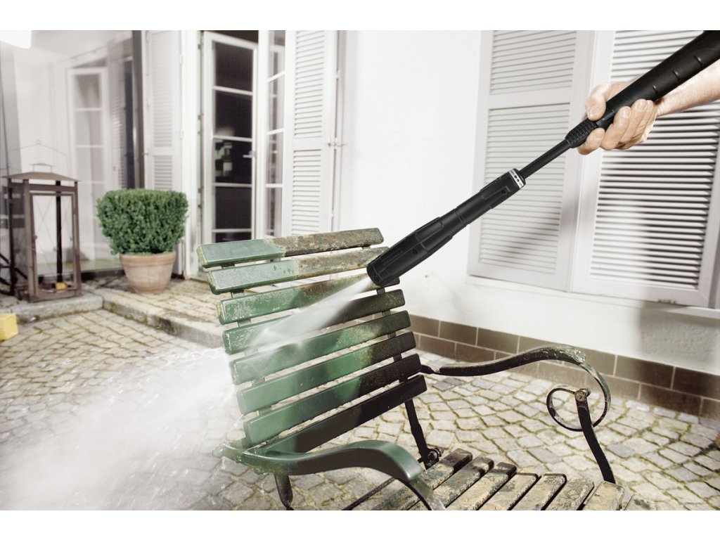 K5 Basic na mierne znečistenie zanecháva veľké autá, bicykle a dokonca aj kamenné steny bezchybne čisté. Vysokotlakový čistič je vybavený výkonným vodou chladeným motorom a má vysokotlakovú pištoľ s rýchlospojkou Quick Connect a 8 metrovú vysokotlakovú hadicu. K dispozícii je tiež pracovný nadstavec Vario Power (VPS), ktorý zjednodušuje nastavenie požadovaného tlaku a poskytuje jemné ošetrenie jemných povrchov, ako aj rotačná tryska s výkonným rotačným bodovým prúdom, ktorý si poradí aj s najodolnejšími nečistotami. Integrovaný vodný filter slúži na ochranu čerpadla.