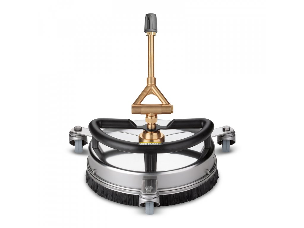 Kvalitný plošný čistič s antikorovým krytom odolný voči horúcej vode. 2-násobné keramické uloženie, otočné kolieska nezanechávajúce stopy, integrovaná prípojka sacej hadice na odsávanie striekacej vody. Vhodný na čistenie interiéru a pre potravinárstvo. Súprava trysiek špecifická pre tento stroj sa musí objednať zvlášť. Max. 250 bar / 1100 l/h / 80 °C, 300 mmDodatočné parametre