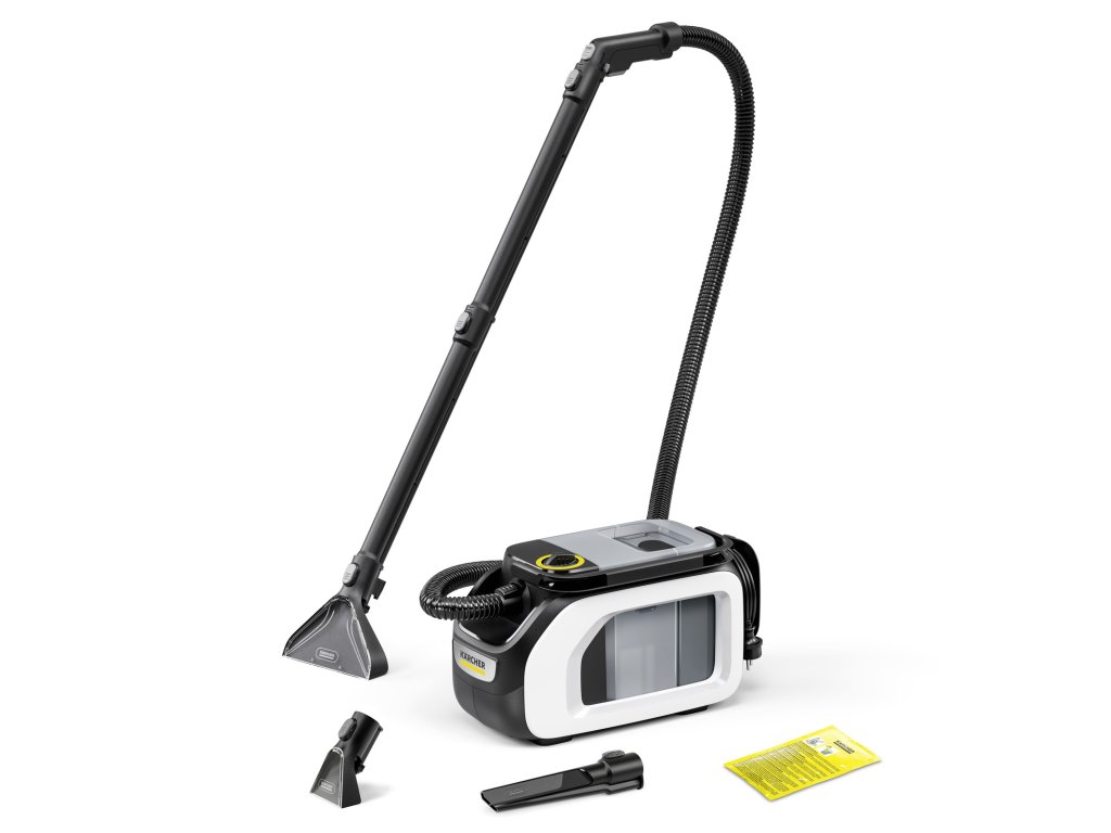 Hĺbkové čistenie až po vlákna a kompaktný dizajn: Tepovač-extraktor SE 3 Compact Floor je výkonné a energeticky efektívne riešenie na čistenie textilných povrchov. Vďaka kompaktnému dizajnu je možné zariadenie uložiť, aby sa ušetrilo miesto, čo zaisťuje, že je rýchlo pripravené na použitie, kedykoľvek je potrebné na dôkladné a pohodlné čistenie do hĺbky vlákien. Nečistoty sa rýchlo a efektívne odstraňujú z čalúneného nábytku a kobercov. Flexibilná sacia hadica a dlhý kábel zaručujú vysoký komfort, flexibilitu a voľnosť pohybu. Inovatívna tepovacia hubica XXL 2 v 1 v kombinácii s predlžovacími trubicami umožňuje pohodlné vertikálne čistenie stredne veľkých kobercov. Pri použití na samotnej rukoväti dokáže tryska vyčistiť väčší textilný nábytok dvakrát rýchlejšie ako bežná tryska na odsávanie čalúnenia. Vďaka praktickým možnostiam uloženia na zariadení je všetko príslušenstvo vždy po ruke. Systém nádrží 2 v 1 zaisťuje, že používatelia nemusia prísť do kontaktu s nečistotami. A po dokončení čistenia ešte viac zaujme svojou hygienickou funkciou čistenia systému, ktorá zabraňuje tvorbe baktérií a zápachu. Zahŕňa tepovaciu hubicu na čalúnenie, štrbinovú hubicu a čistiaci prostriedok.