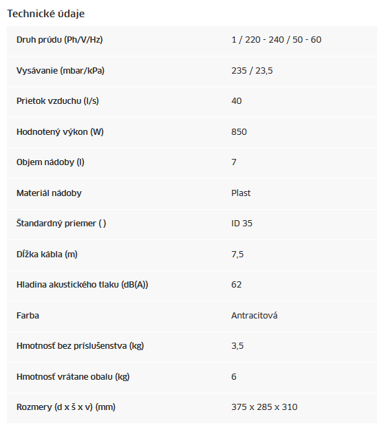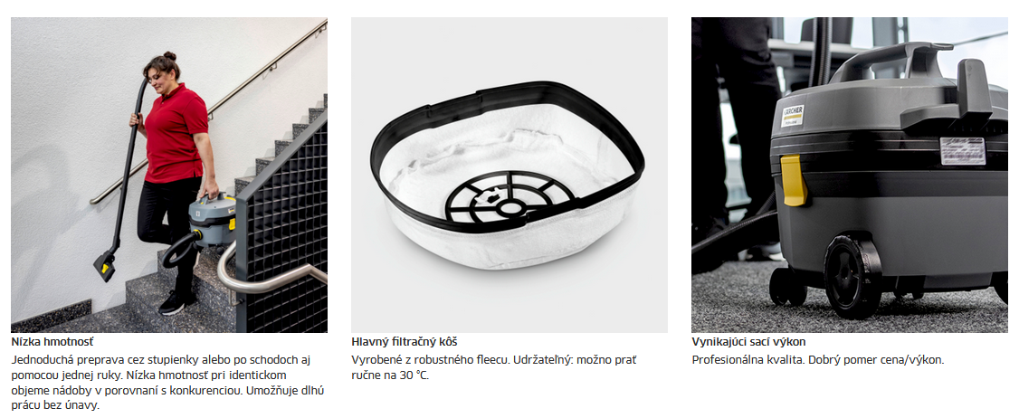 Pomocou 1000 W výkonu vytvára tento kompaktný suchý vysávač T 7/1 Classic pozoruhodné vákuum o veľkosti 23,0 kPa. Pritom ale pracuje príjemne ticho iba so 63 dB(A). Tento stroj má saciu hadicu s dĺžkou 2,00 m a vďaka hmotnosti 3,5 kg je príjemne ľahký. Pohodlne vyformované koleno umožňuje prácu bez pocitu únavy. Vysávač na suché vysávanie dobre drží stopu vďaka dvom veľkým a dvom otočným kolieskam. Nárazník po celom obvode sa stará o to, aby nádoba odolná voči nárazu s objemom 7,5 l nespôsobila na nábytku žiadne škody. T7/1 Classic je sériovo vybavený filtračným vreckom z netkanej textílie.