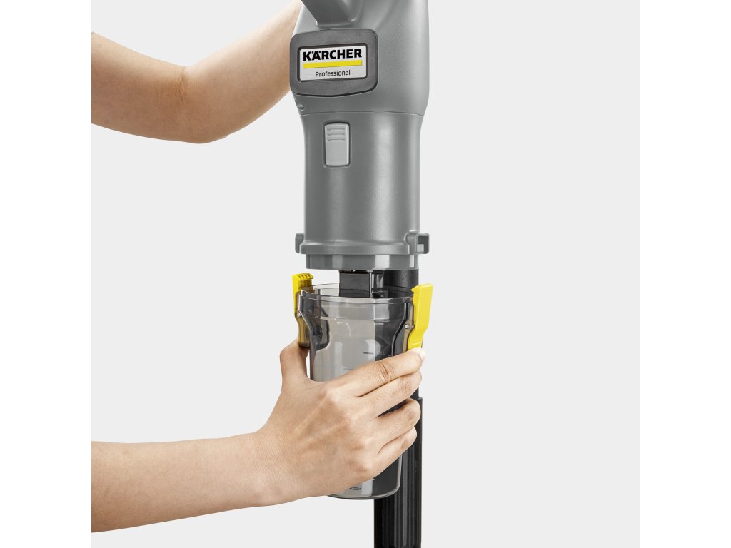 Robustný batériový vysávač na suché vysávanie LVS 1/1 Bp ponúka vynikajúci sací výkon a efektívne odstraňuje prach a nečistoty. Technológia cyklónového filtra Kärcher udržuje konštantne vysoký sací výkon. Bezdrôtový, kompaktný a manévrovateľný vysávač je ideálny na čistenie v hoteloch, stravovacích zariadeniach, maloobchode a v sektore čistenia budov. Vďaka neobmedzenej slobode pohybu sa výborne hodí aj na čistenie schodov. Integrovaný filter HEPA 13 zaisťuje najvyššie hygienické štandardy. Sací výkon je možné nastaviť v troch stupňoch a v niekoľkých jednoduchých krokoch sa z tyčového vysávača stane ručný vysávač na čalúnenie a rôzne iné povrchy. Nádoba na odpad nevyžaduje žiadne filtračné vrecká, šetrí náklady a je udržateľná. Dá sa rýchlo a hygienicky vyprázdniť – bez priameho kontaktu s nečistotami. S výkonnými 18-voltovými batériami Kärcher dosahuje vysávač vynikajúce výsledky čistenia. Praktický držiak zaisťuje, že dodávaná štrbinová hubica je vždy poruke. Poznámka: batéria a rýchlonabíjačka nie sú súčasťou dodávky a je potrebné ich objednať samostatne. Veľký výber hubíc a príslušenstva (DN 35) je možné objednať samostatne ako voliteľné príslušenstvo.