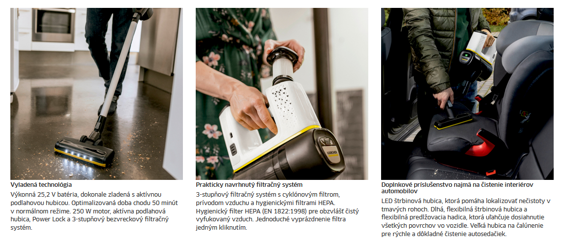 Akumulátorový bezvreckový vysávač VC 6 ourFamily Car ponúka vysoký výkon a správne príslušenstvo pre dôkladné čistenie v domácnosti aj v aute.