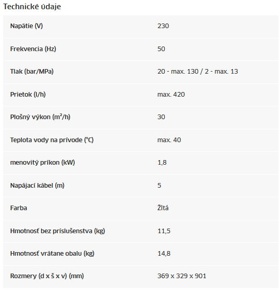 | Kategória: | Vysokotlakové čističe |