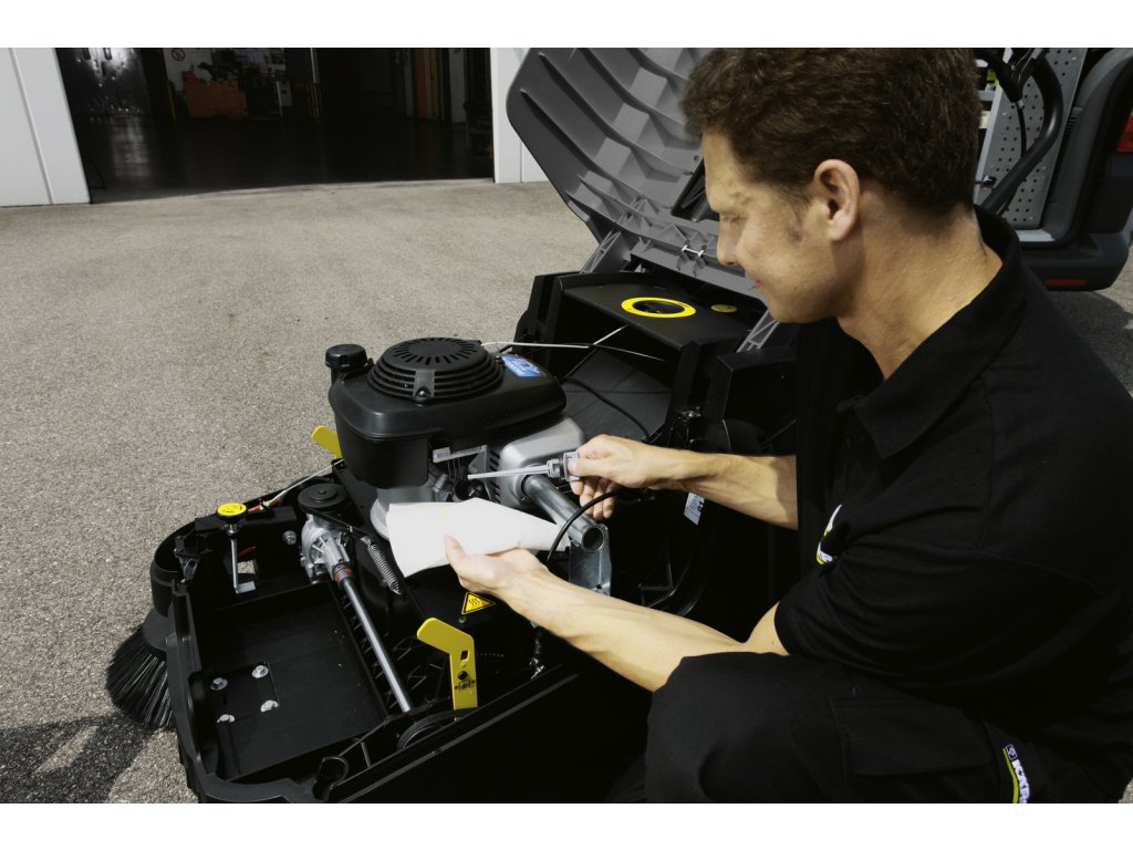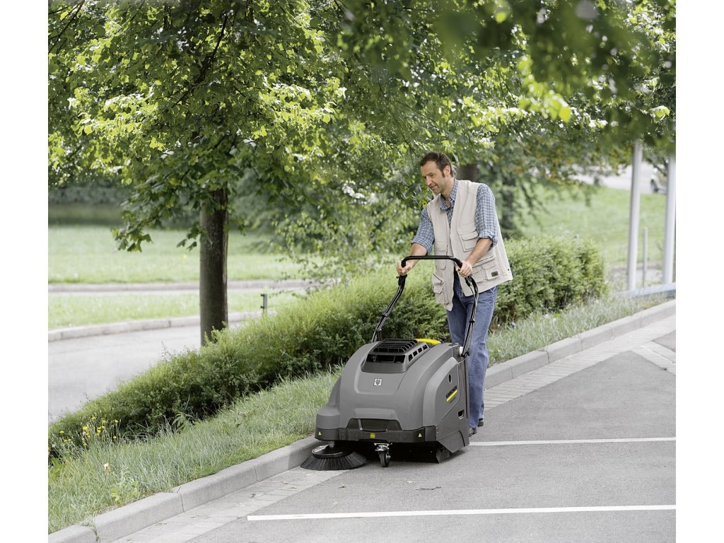 U zametacieho stroja s odsávaním KM 75/40 W Bp ide o ručne vedený zametací stroj s benzínovým pohonom, s pohonom pojazdu a efektívnym odsávaním prachu. Ďalšie technické detaily: Pohon: > Benzínový motor Honda 3,3 kW > Rýchlosť zametania plynulo regulovateľná: 0 - 4,5km/h Zametací systém: > Princíp zametania s prehadzovaním cez valec > Zapínateľná bočná metla s nastavením zametacieho obrazca bez pomoci náradia > Zdvíhanie / spúšťanie bočnej metly > výmena a nastavovanie hlavného zametacieho valca bez náradia Filtračný systém: > Plochý skladaný filter z polyestru (filtračná plocha: 1,8 m2) > Efektívny mechanický oklep filtra > Výmena filtra bez náradia Nádoba na nečistoty: > objem: 40 l > Nádoba s kolieskami, priehlbinou na uchopenie a vysúvateľným držadlom vozíka Obsluha > Displej EASY Operation > Madlo dimenzované pre rôzne pre rôznu výšku obsluhujúcej osoby > Ovládanie pohonu pojazdu a klapky na veľké nečistoty na madle > Zdvíhanie / spúšťanie bočnej metly na priamom ovládacom paneliDodatočné parametre